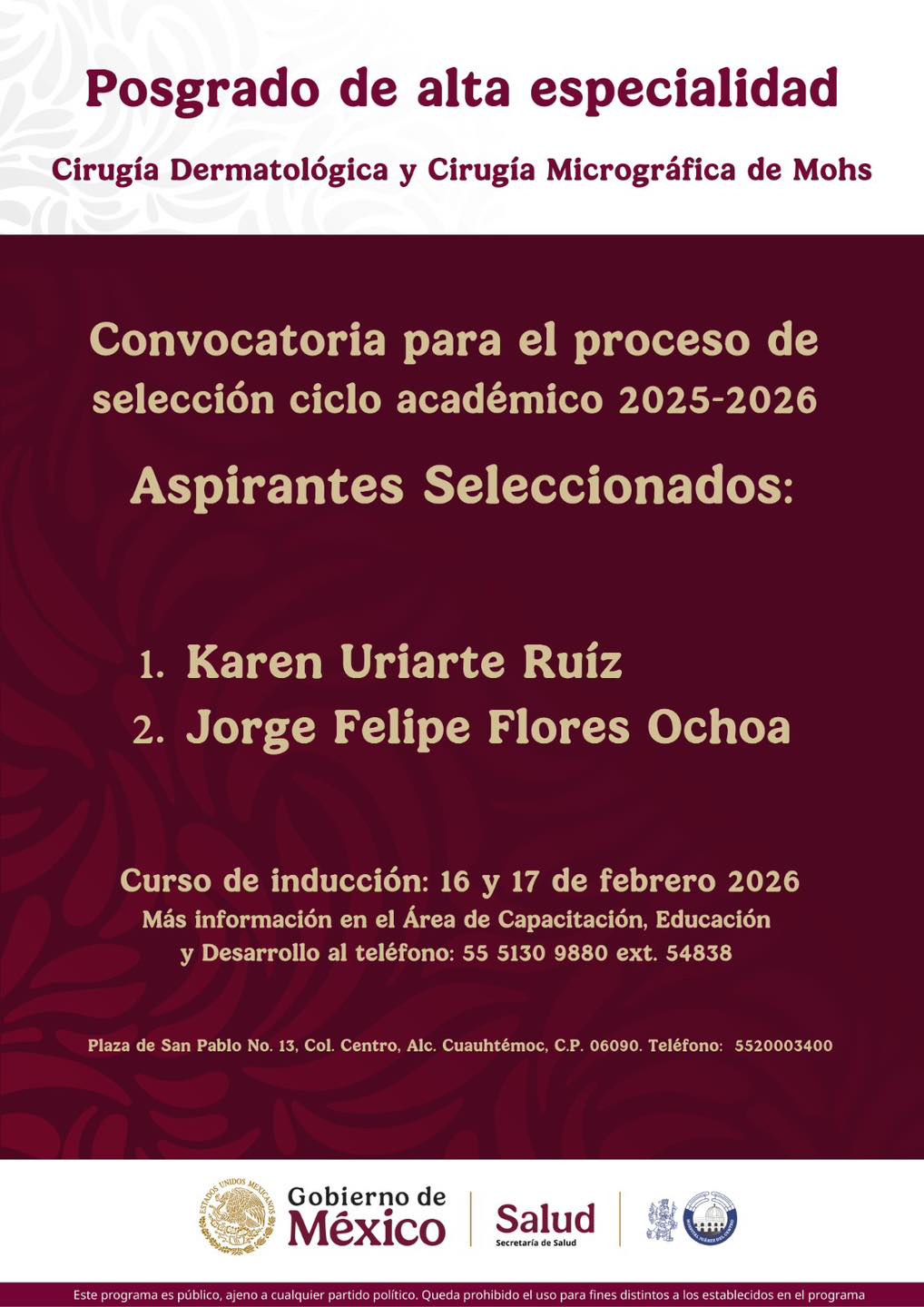CICLO ACADÉMICO 2026 PARA POSGRADO DE ALTA ESPECIALIDAD EN MEDICINA (PAEM) EN EL HOSPITAL JUAREZ CENTRO
